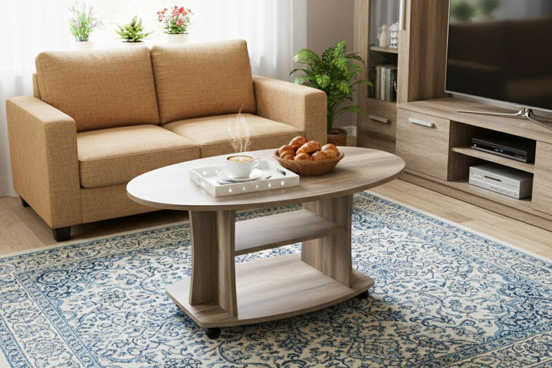 • A nagy ovális asztallap több helyet biztosít italok, dekorációk, laptop vagy munkadokumentumok számára – ideális nappaliba, home office-ba vagy lounge területekre.