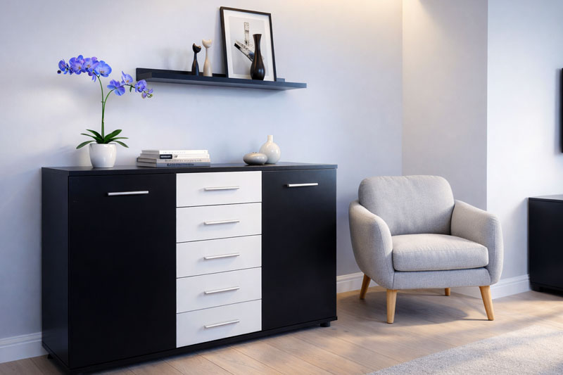 A képen látható komód színe: FEKETE-FEHÉR