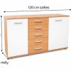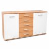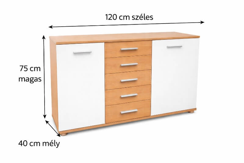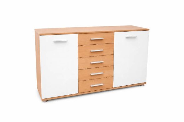 Komód 2 ajtós 5 fiókos bükk színben, fehér ajtó frontokkal (készleten)