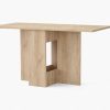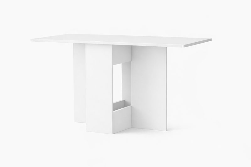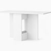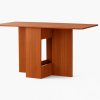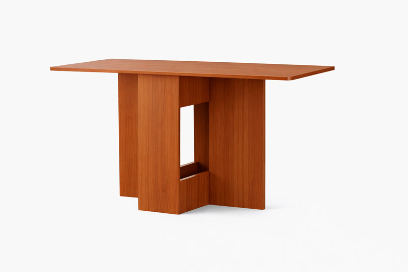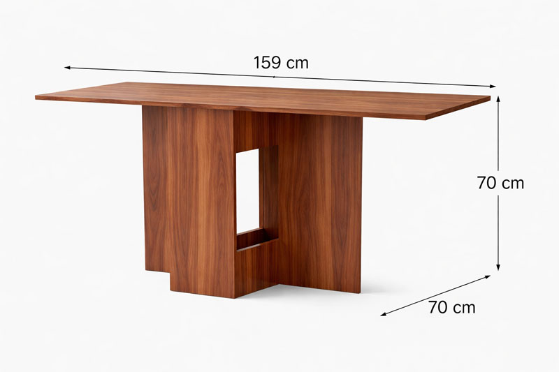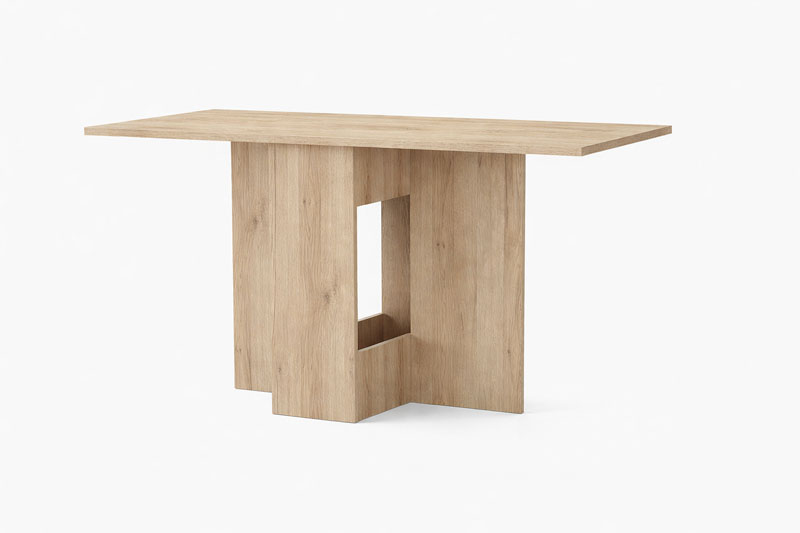 Egy kis, keskeny asztal, amelyet kétféleképpen lehet kinyitni, vagy a félig felnyíló állapotban hagyjuk vagy a teljesen kinyitottban. Mindkét esetben használható kényelmesen az étkezéseknél, mégis helytakarékos. A felbillenthető részei alatt könnyen elférhetnek a székek és ideálisabbá tehető az ülés is. A konyhaasztal szélei, azaz az asztallap, a teteje is egyenes, szögletes formájúak, laminált bútorlapból készülnek.