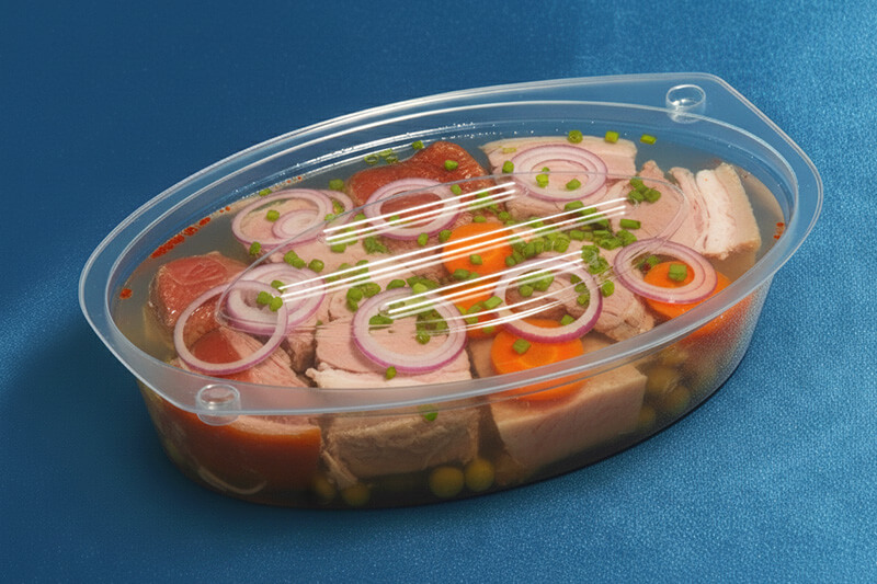 A kocsonyás tál lezárását is biztosíthatja a fedéllel együtt való rendeléssel. Az átlátszó műanyag doboz és a fedele apróbb „bordákkal” rendelkezik, mely a tartást segíthetik elő.