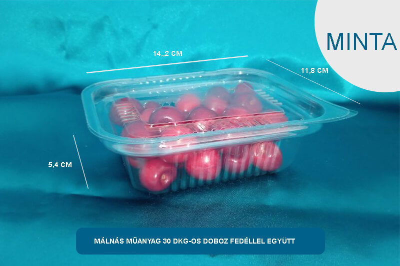 - Málnás műanyag 30 dkg-os doboz fedéllel
